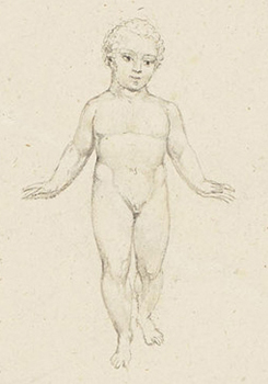 Several other elements are important for understanding the painting and the way Blake interprets John, inventing details that diverge from the text and from the main iconographic tradition. First, in terms of the pictorial setting, Mary and Jesus have switched places: he is now outside the tomb and she occupies the place where he had lain before his resurrection (Billingsley 120). Second, his facial expression and the gesture of his hands seem to beckon or call her to rise from the tomb, exhorting her to overcome her grief and confusion. This reading can be supported by comparing Mary’s look of astonishment and hand gesture with the similar gesture and facial expression of Lazarus in The Raising of Lazarus (illus. 6). The hands of both figures seem to suggest levitation.
