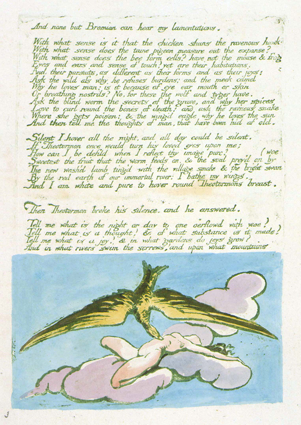 Oothoon responds to Theotormon’s masturbatory status with her own autoerotic fantasy of self-punishment, “calling Theotormons Eagles to prey upon her flesh”: