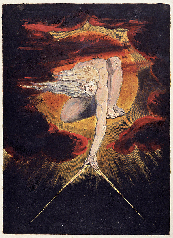 To strengthen his reading of Urizen as a threat, Dickinson pronounces the name to rhyme with “horizon” rather than “reason.”The pronunciation differs in the spoken introduction on the studio album. On the live album Scream for Me Brazil, the introduction corresponds to the song. This choice places more emphasis on Urizen as one who restricts, confines space, creates boundaries, and expects others to submit to his rule(s). Urizen sets up or measures the horizon as a boundary, as can be seen in his depiction as “The Ancient of Days.” As he is a character who imprisons, the “gates of Urizen” are the one element to break his power—passing the gates means entering or escaping his realm and his influence. They are the gates to another world, one not ruled by reason and the bodily senses, and they thus resemble Blake’s “doors of perception,” which enable man to see “every thing … as it is, infinite” (Marriage copy G, object 13, A Memorable Fancy).