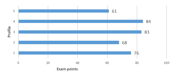 Figure 5. The average exam grade points (n=72 students)