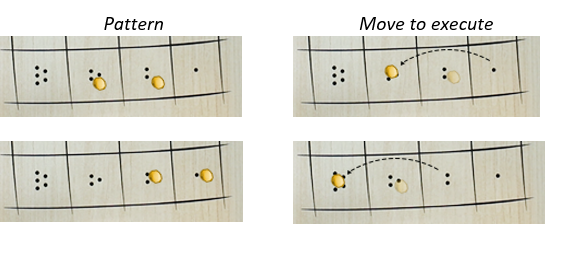 Short open movement. This move is made when square 2 has more than one piece. It consists of taking half of the tokens from box 2 to box 1 and the other half to box 3. If the number of tokens is odd, one token is left in box 2, and with the remaining tokens proceed as in the case of the even number of tokens (see figure 2).