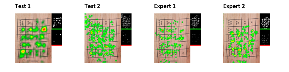 The research question was as follows: Does the application of the YITP method result in statistically significant differences in individual heatmaps when comparing the initial and final evaluations of the novice group? This question seeks to identify alterations in visual attention patterns resulting from the acquisition of the YITP method.