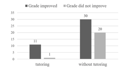 The bar graphs were designed in Microsoft® Excel (for an example, see Figure 1) and they were presented in an online questionnaire. For every bar graph, participants were asked to decide (based on the data presented) if a given intervention (present, absent) has a positive, negative, or no effect at all on a given dichotomous outcome variable (effect present, absent). For the confirming problems, participants interpreted data that showed a positive relation between tutoring (in maths, physics, or chemistry) and grade improvement (i.e., the number of students whose grades did or did not improve); for the disconfirming problems, participants interpreted data that showed a negative or no relation between doing sports (jogging, cycling, or swimming) and the improvement of people’s fitness level (i.e., the number of people whose fitness level did or did not improve); and for the abstract problems, participants interpreted data that showed a positive, negative or no effect between an abstract candidate cause (X, Y, or Z) and an abstract outcome variable x (i.e., the number of instances where x is present or absent). The specific problem contexts in the grounded condition were chosen because we expected them to elicit equally strong expectations regarding the direction of the causal relation (e.g., tutoring improves grades, doing sports improves fitness level).