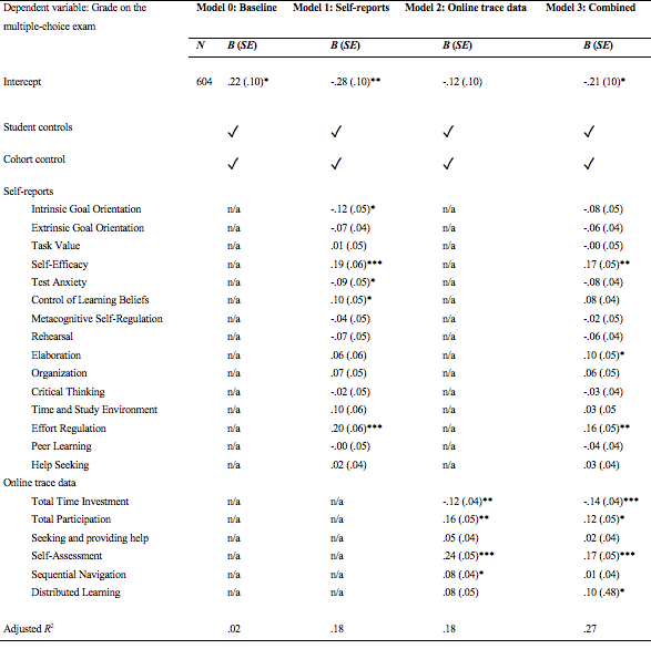 Self-Reports and Online Trace Data Regressed on Academic Performance