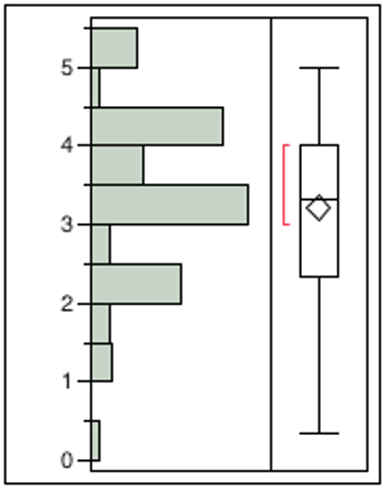 Matejka, et al. (2016) is to our knowledge the only in-depth study testing the effect of the number of ticks (on a slide line) on self-report precision and speed. This study indicated that with regard to precision that 11 ticks is superior to five. This study also supported the use of dynamic feedback (a running quantitative score above the moveable slide marker). This addition enhances precision but has a detrimental effect on the speed of self-report. This study also pointed to the benefit of banded coloring of the slider line to signify increments as being superior to ticks alone.