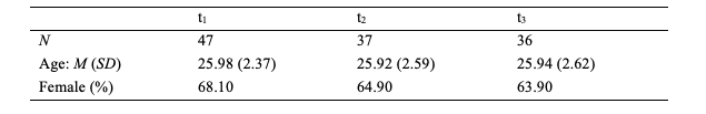 Our target group consisted of senior medical students at the Technical University of Munich in the clinical elective period of their final year in 2017/2018. In Germany, the clinical elective period lasts 48 weeks and is divided into three 16-week terms. Each medical student has to conduct one term each in surgery and internal medicine and can choose where to spend the third term. We introduced our study at the welcome session for the local clinical elective students and invited them to participate. Students were asked to take part in three measurements: in the first week (t1), after 24 weeks (t2) and close to the end of their clinical elective period (t3, after 46 weeks). The sample was a convenience one. Participation was voluntary and rewarded with a book voucher of increasing value after completing the three Q-sorts (t1 = 15 EUR; t2 = 30 EUR; t3 = 60 EUR). A total of 47 final-year undergraduate medical students participated. This number decreased slightly over time (cf. Table 1). Ten students participated only at t1, another student participated at t1 and t2, and 36 students participated at all three measurement points. During the year, no further students were included in the study. We conducted a chi2 test to analyse the group differences between students who only participated in t1 with students who participated also at all three measurement points on the basis of their Q-sort profile in t1. The chi2 test showed no significant difference between the students who participated at all three measurement points and those who only participated in t1, (ꭓ2 (2) = 2.137, p = .343). The ethics committee of the Klinikum rechts der Isar of the Technical University of Munich approved the study (Project number: 482/17 S).