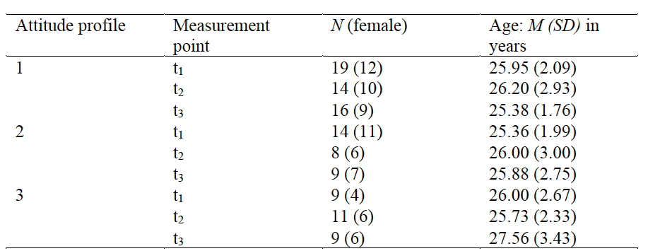 Distribution of students based on attitude profiles at all three measurement points