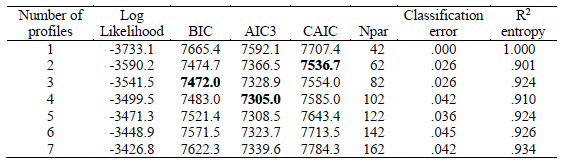Model fit indices Latent Profile Analyses