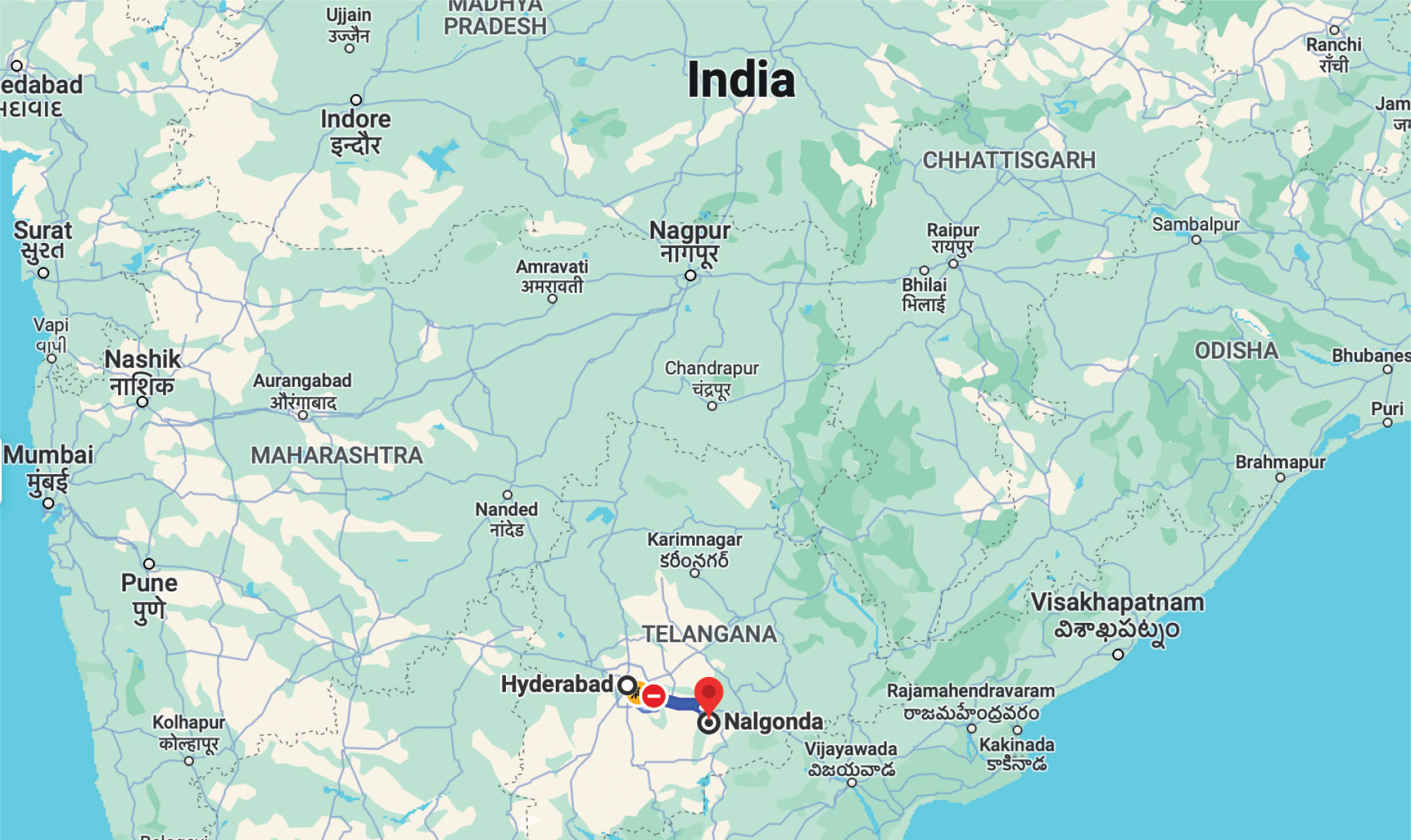 Fig. 1. The map shows the geographical location of Nalgonda, 100 km (62 miles) from Hyderabad, India.
