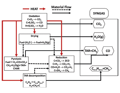 Figure 5: General scheme and areas of a gasification process.